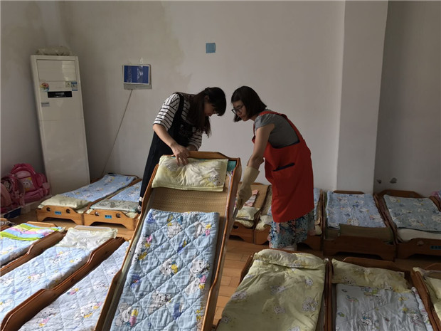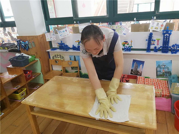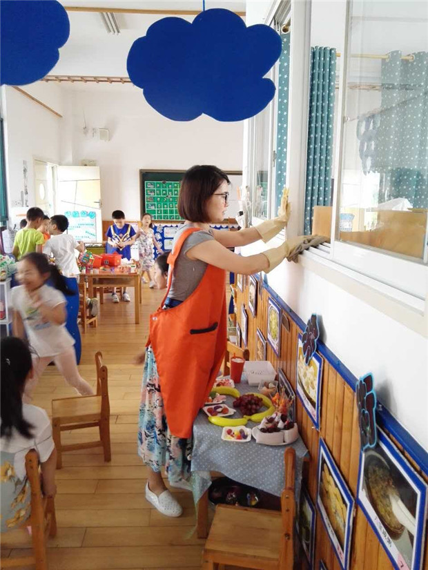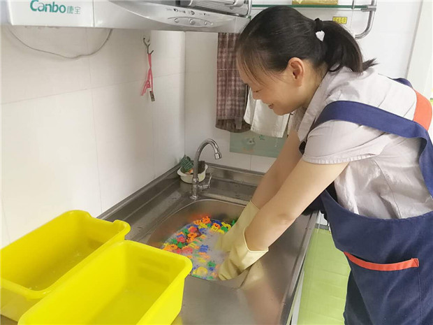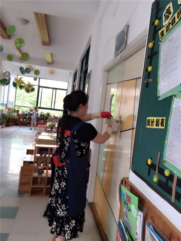 三、做好全园卫生消毒工作。认真落实“每日清扫、定期消毒、经常通风”工作。对孩子的生活、活动空间采用开窗通风和紫外线灯消毒,用消毒水拖地,楼梯扶手、教室门把手、幼儿玩具、图书等严格按要求进行刷洗消毒暴晒。